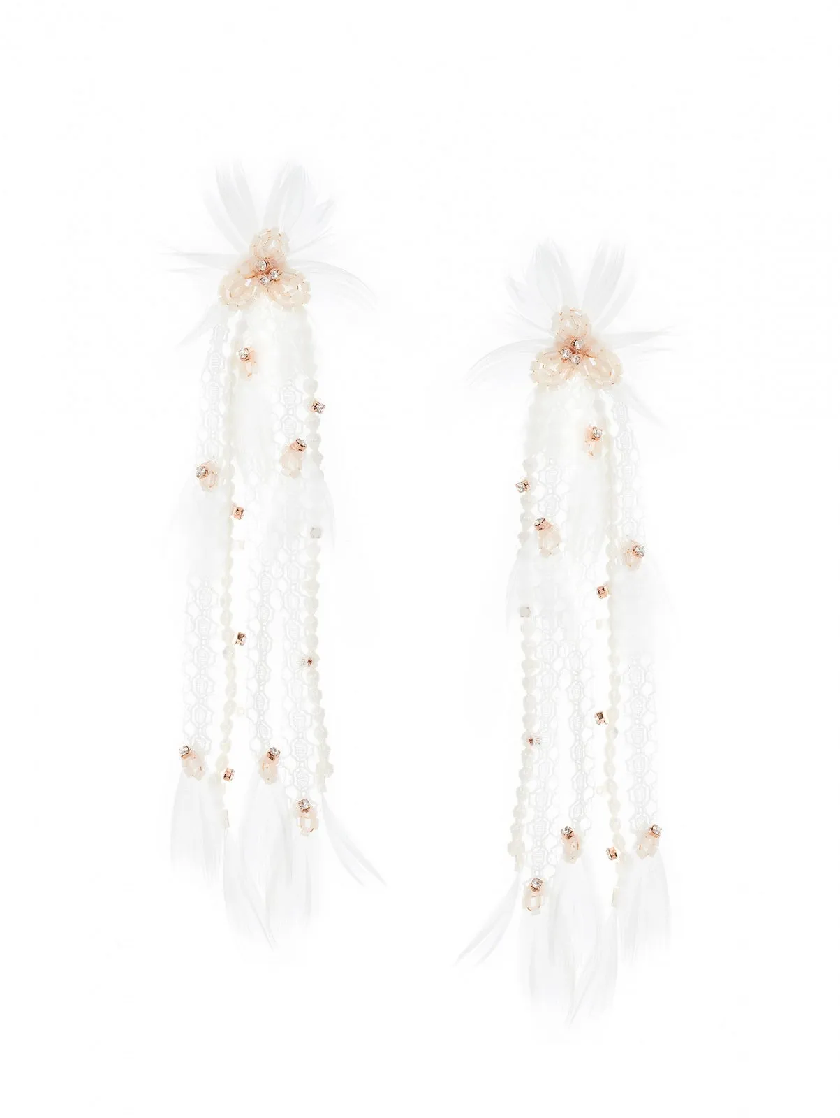 - Produkt: NC-1346 – Ohrringe mit Blume aus Perlen, Federn und Spitzenbändern