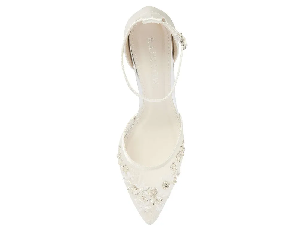 Azzura Ivory Satin Mesh Bejewelled – Brautpumps mit Keilabsatz (6,5 cm) von Rainbow Club